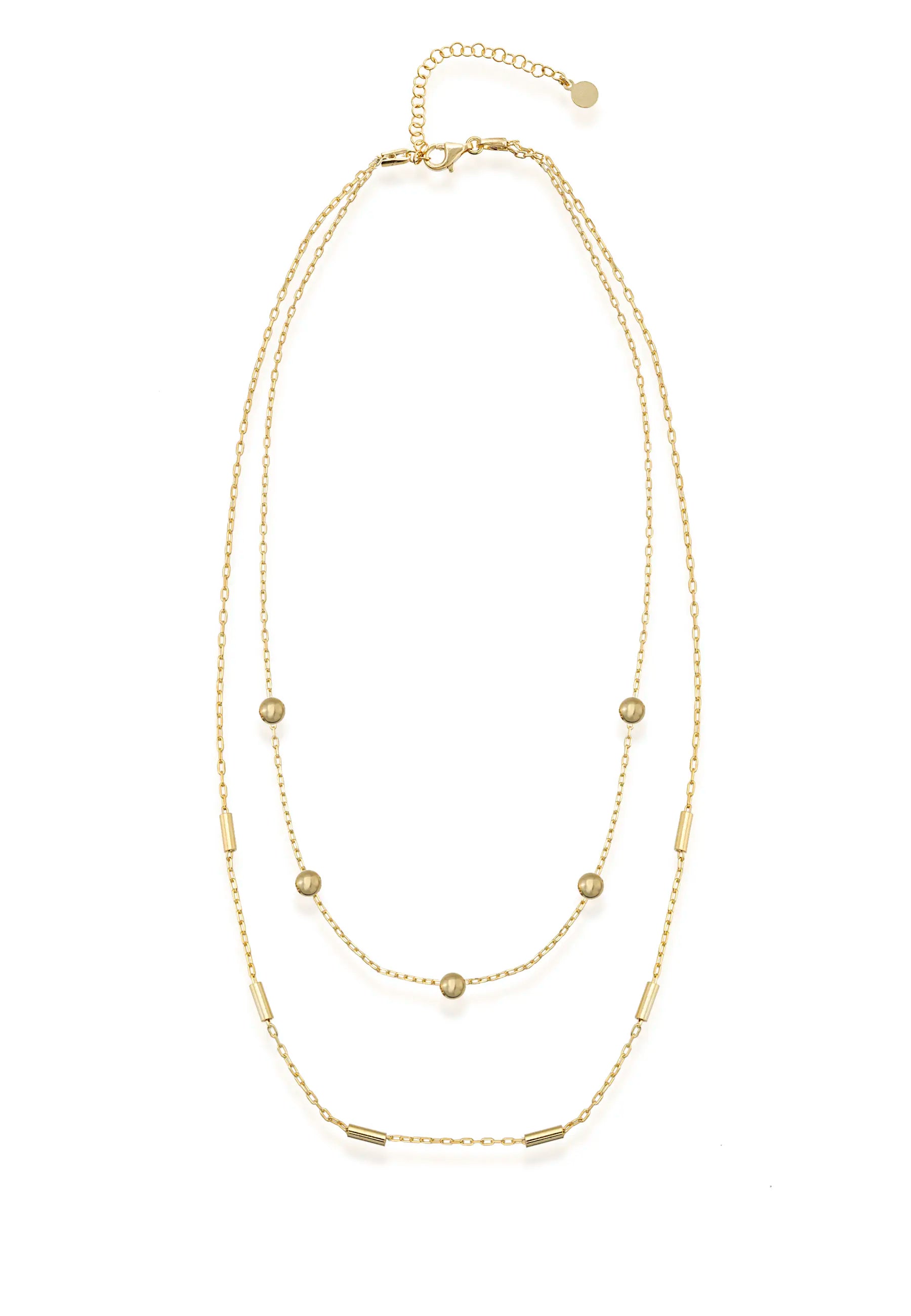 Altın Kaplama Çift Zincirli Modern Tasarım Kolye