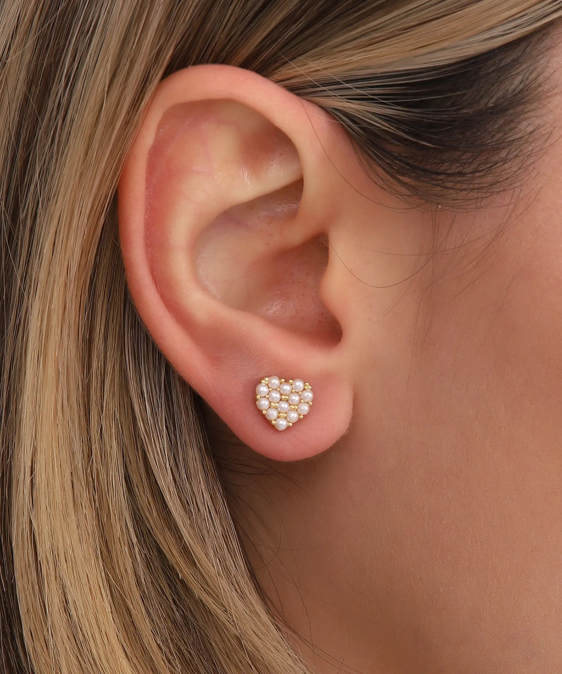 Altın Kaplama Minimal İnci Detaylı Kalp Küpe