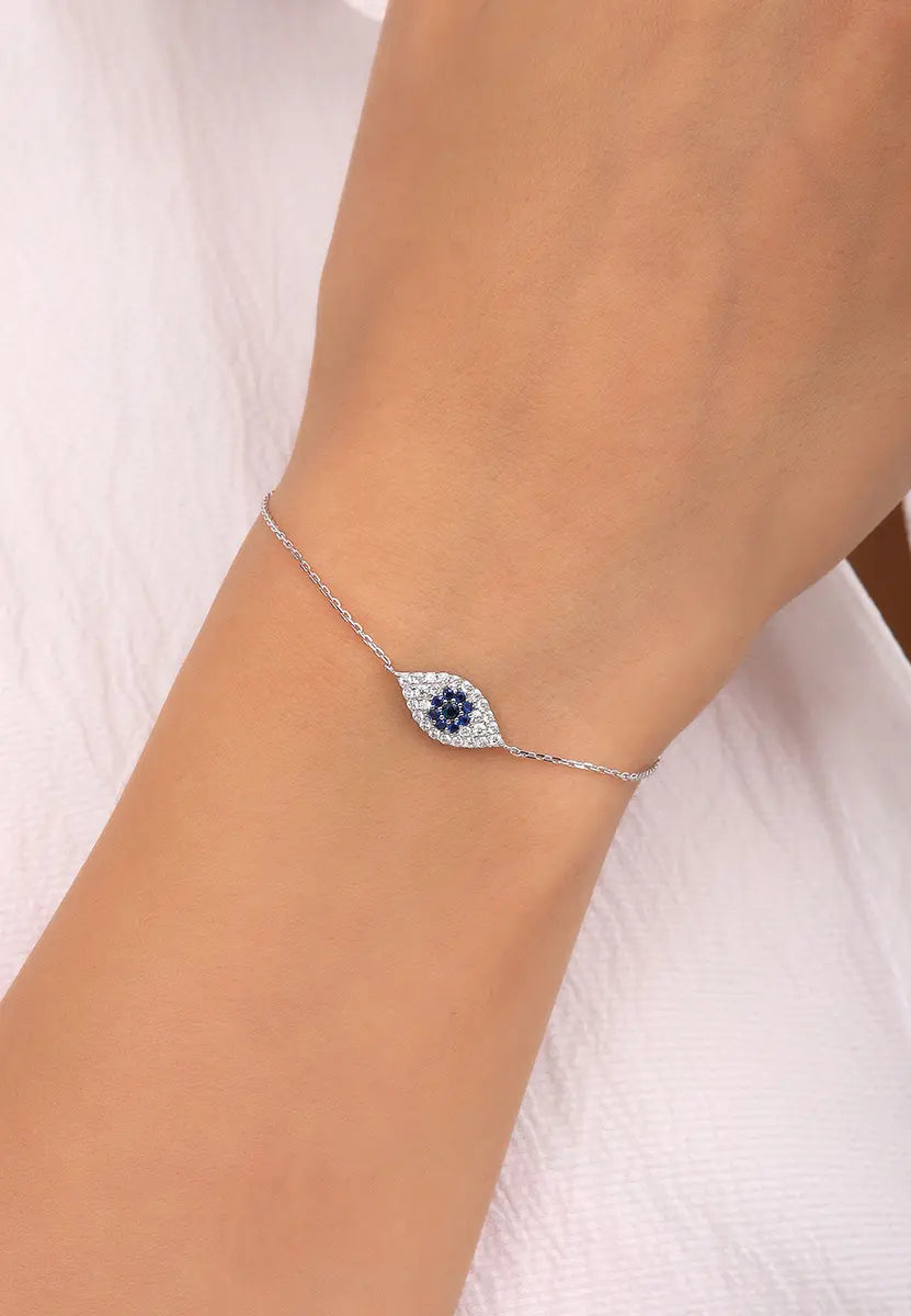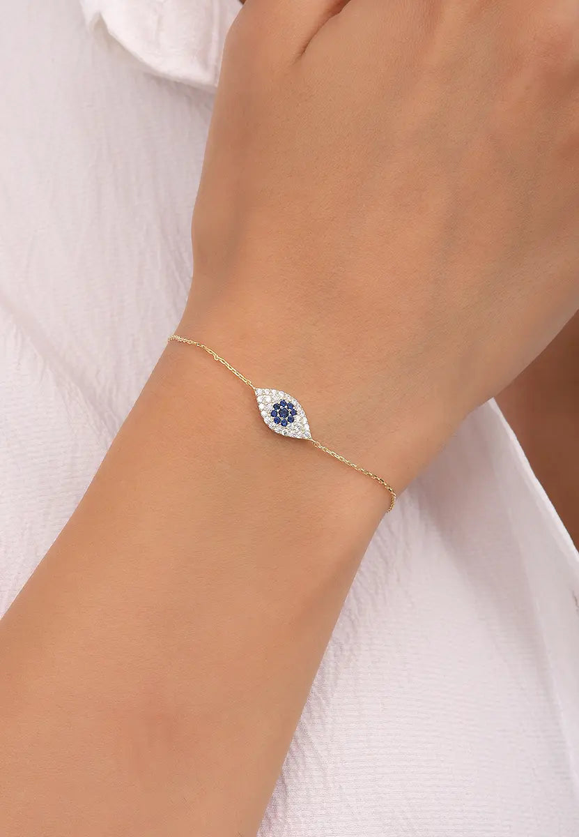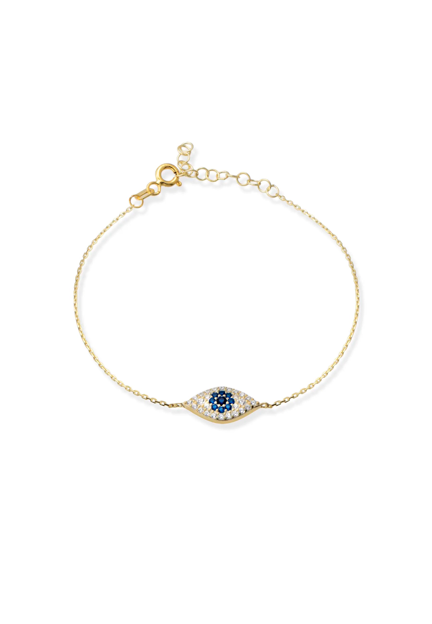 Altın Kaplama Nazar Boncuğu Figürlü Gümüş Zincir Bileklik