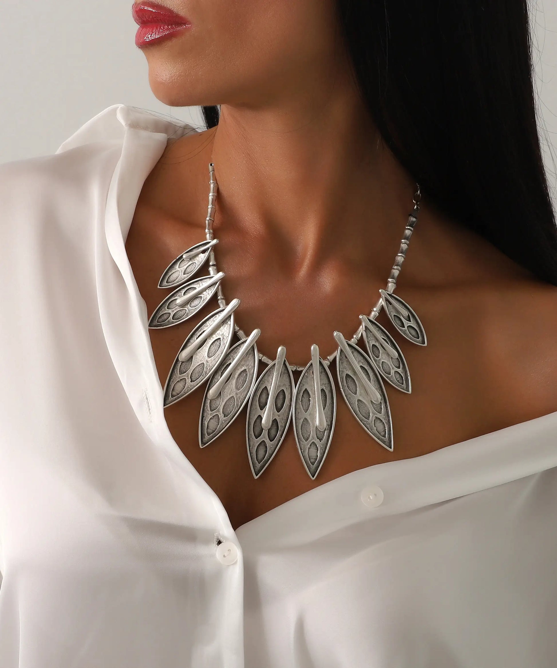 Bohem Yaprak Motifli Gümüş Kaplama Kolye
