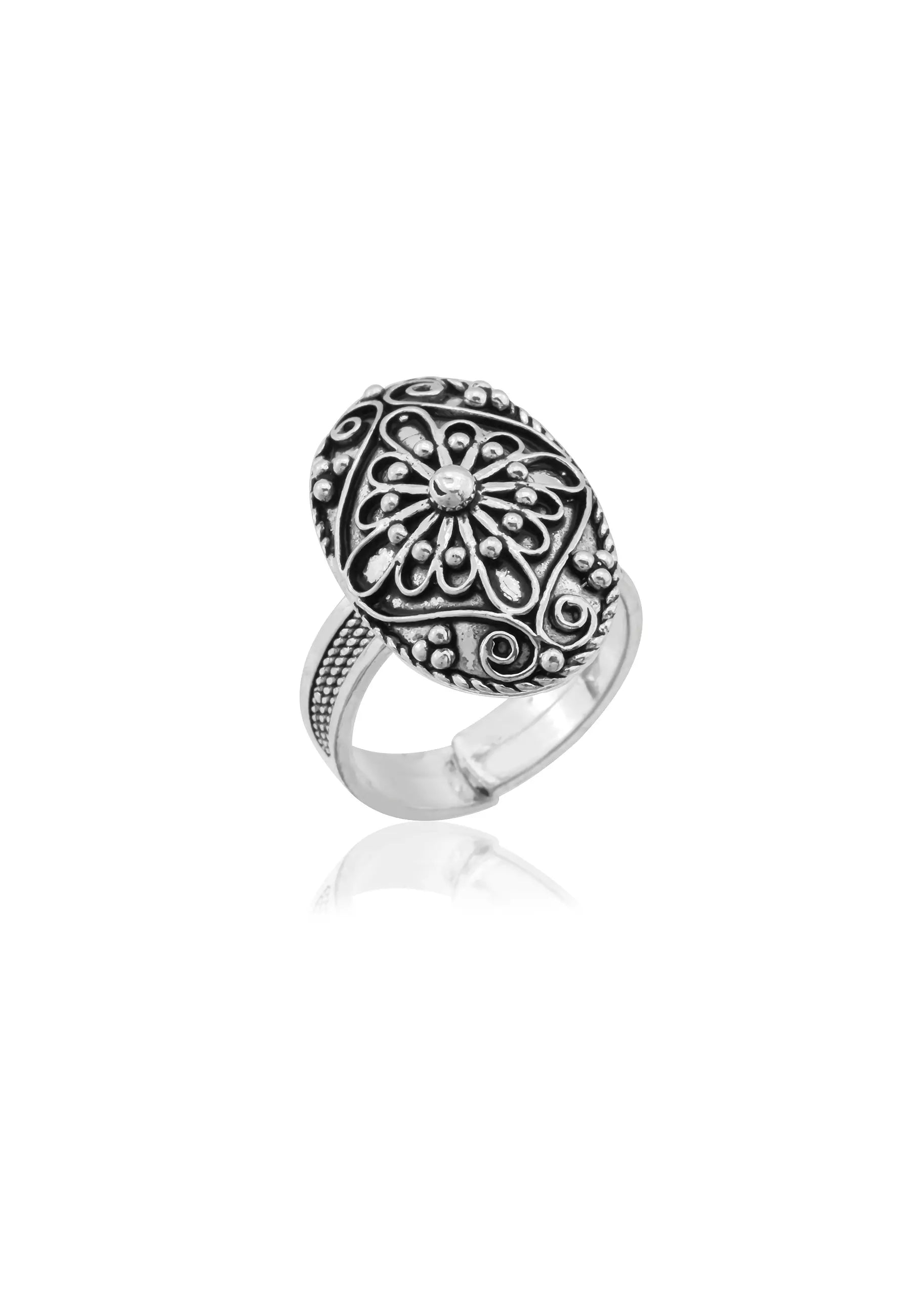 Çiçek Desenli Gümüş Bohem Yüzük