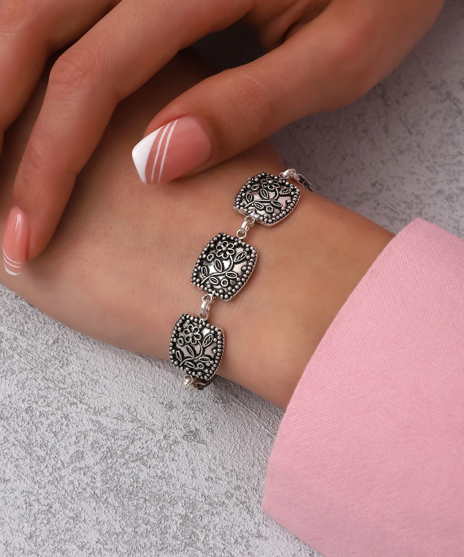Çiçek Motifli Gümüş Bileklik