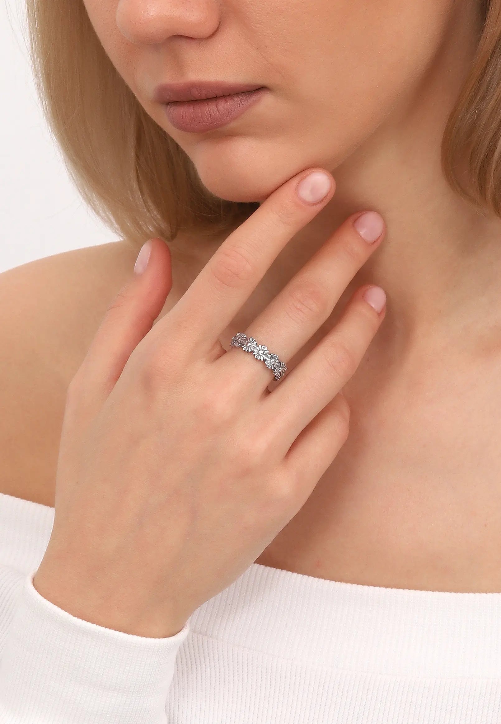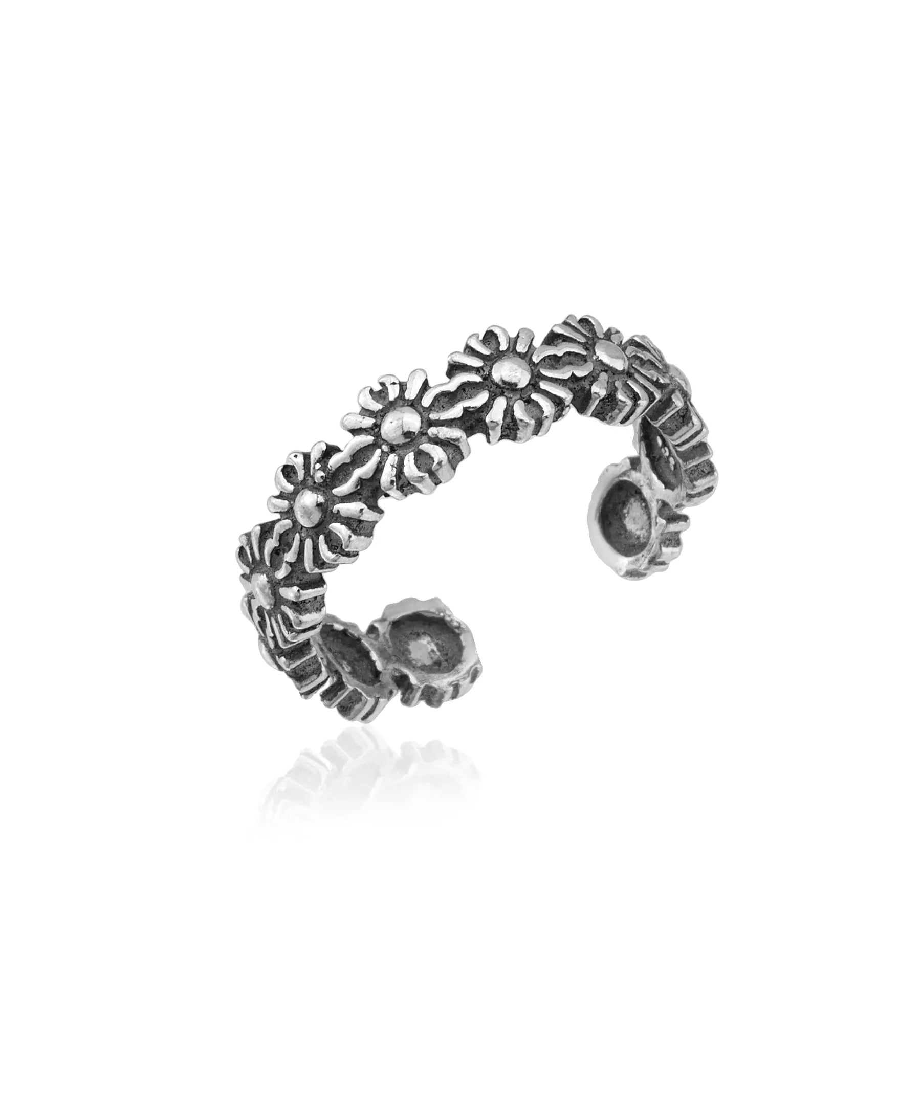 Çiçek Motifli Gümüş Bohem Yüzük