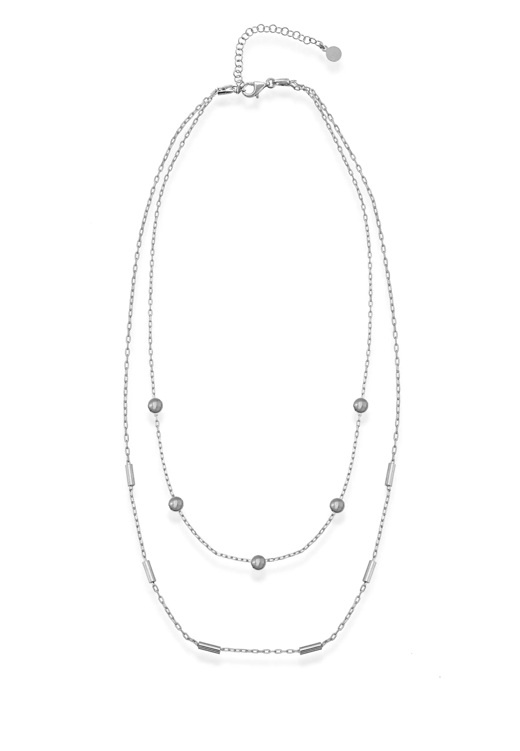Çift Zincirli Modern Tasarım Gümüş Kolye