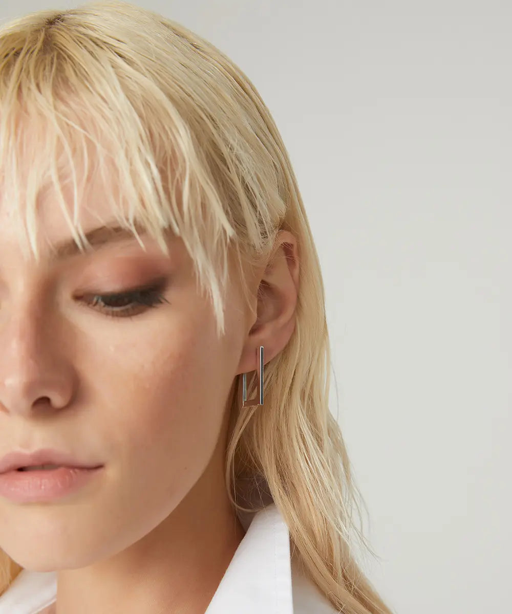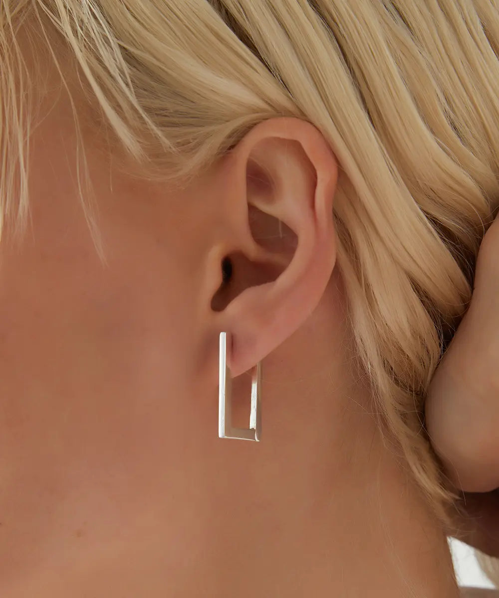 Dikdörtgen Tasarımlı Gümüş Küpe
