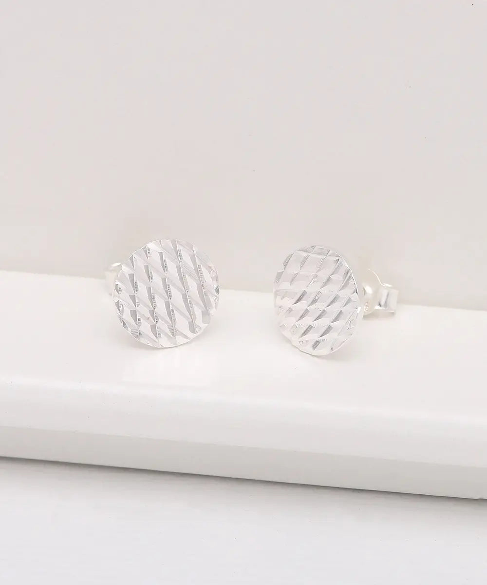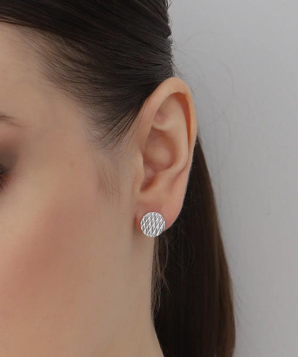 Dokulu Yuvarlak Minimal Gümüş Küpe