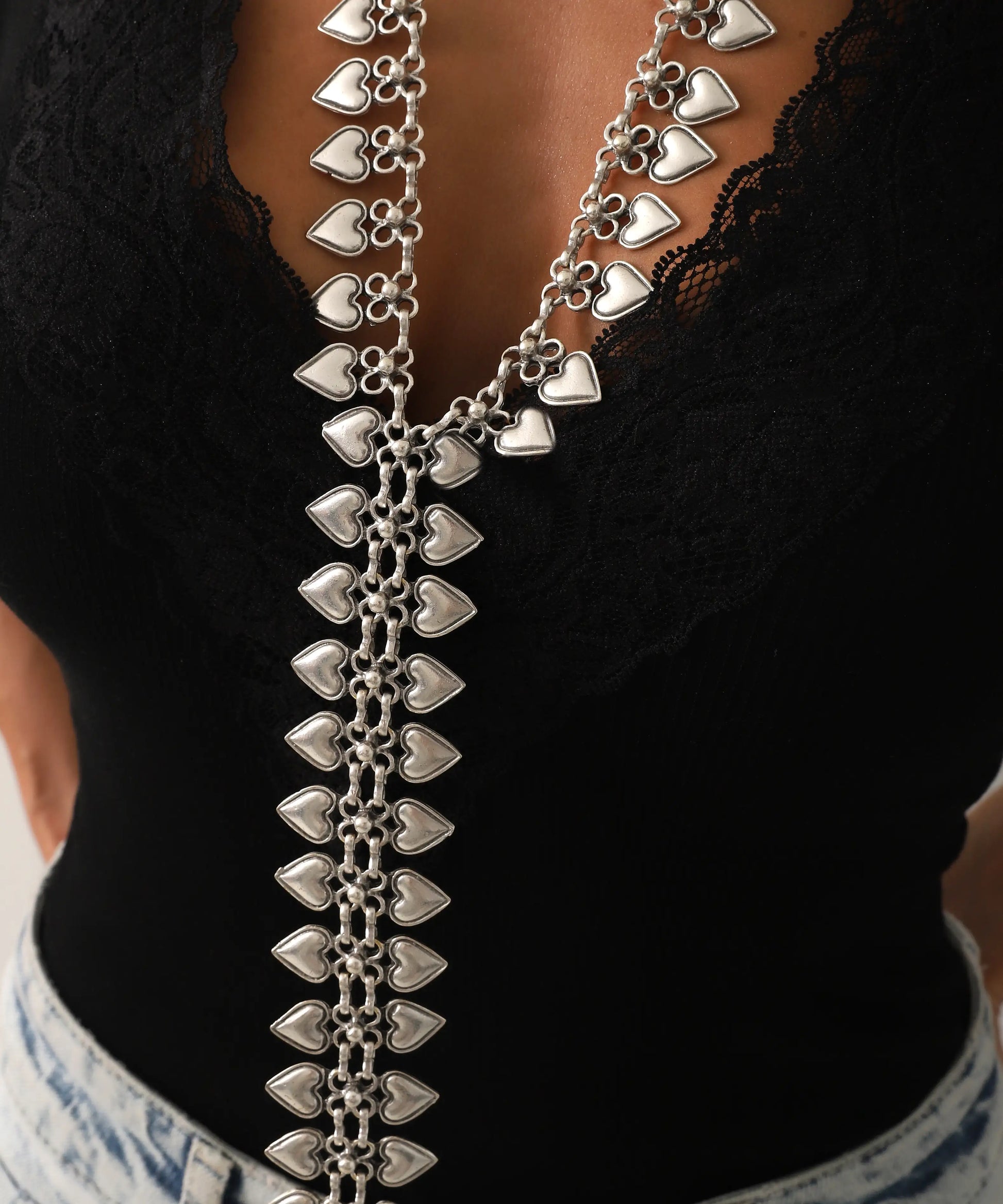 Gümüş Kaplama Uzun Sallantılı Kolye