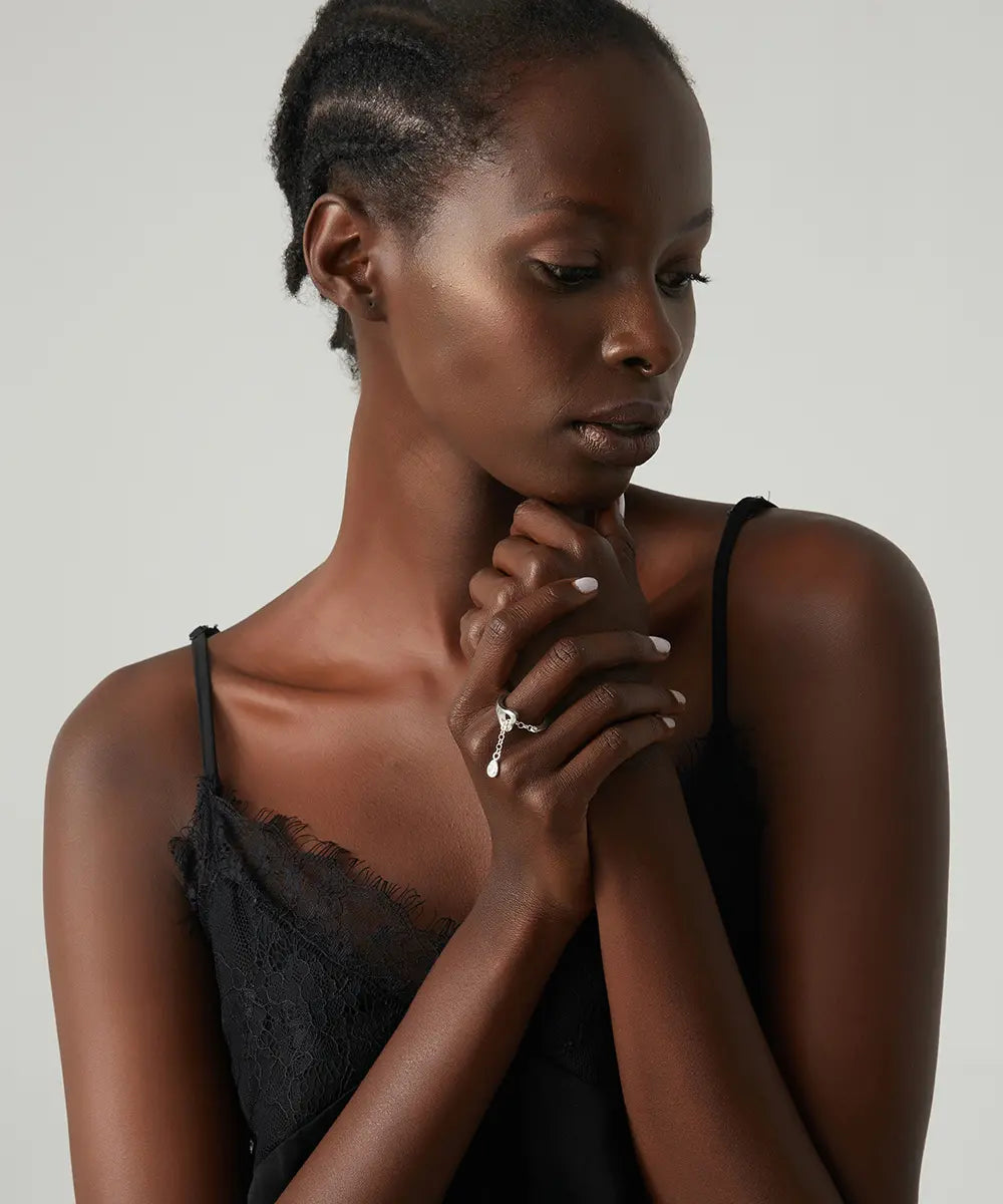 Gümüş Sallantılı Zincir Detaylı Yüzük