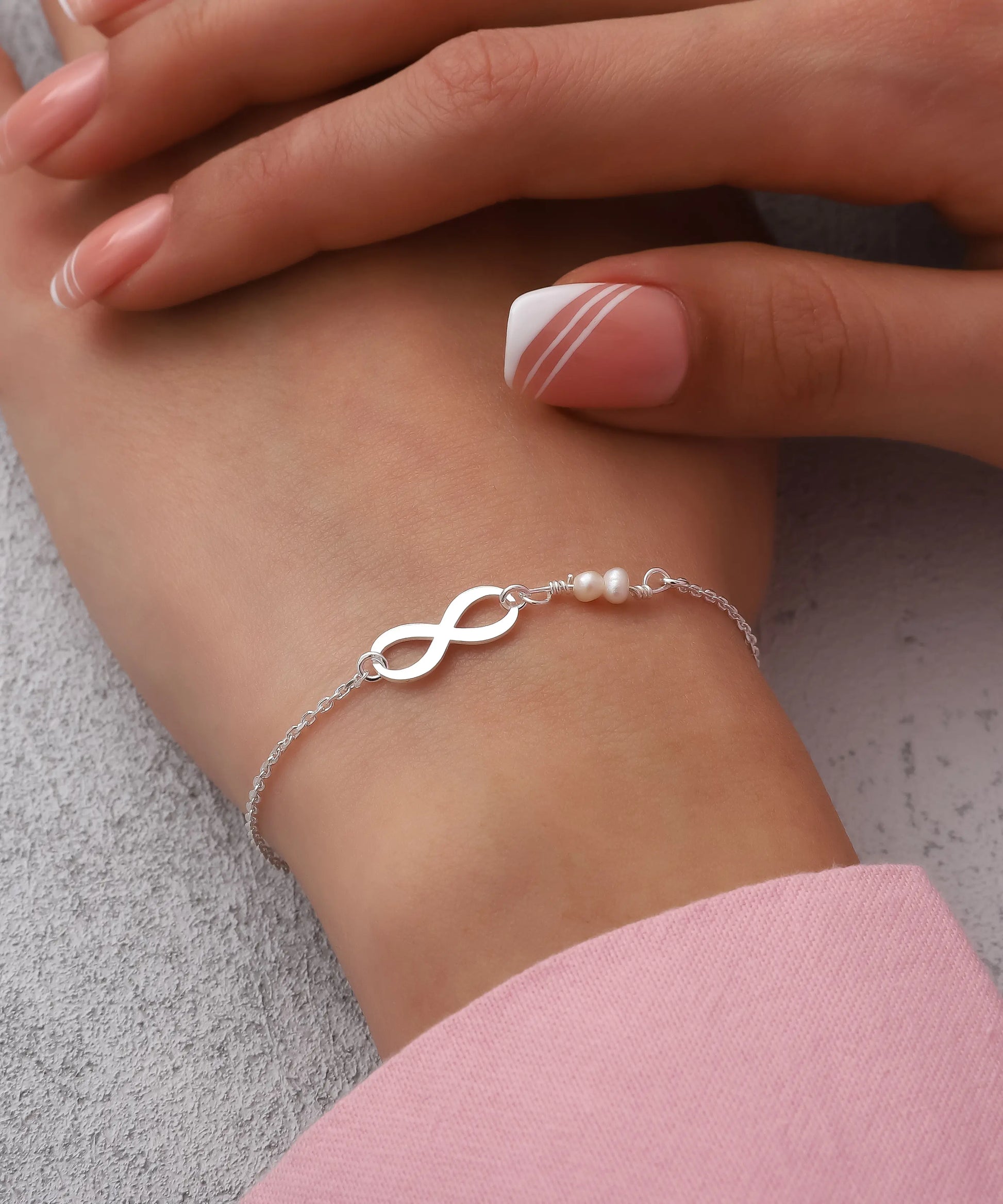 İnci Dokunuşlu Minimal Sonsuzluk Gümüş Bileklik