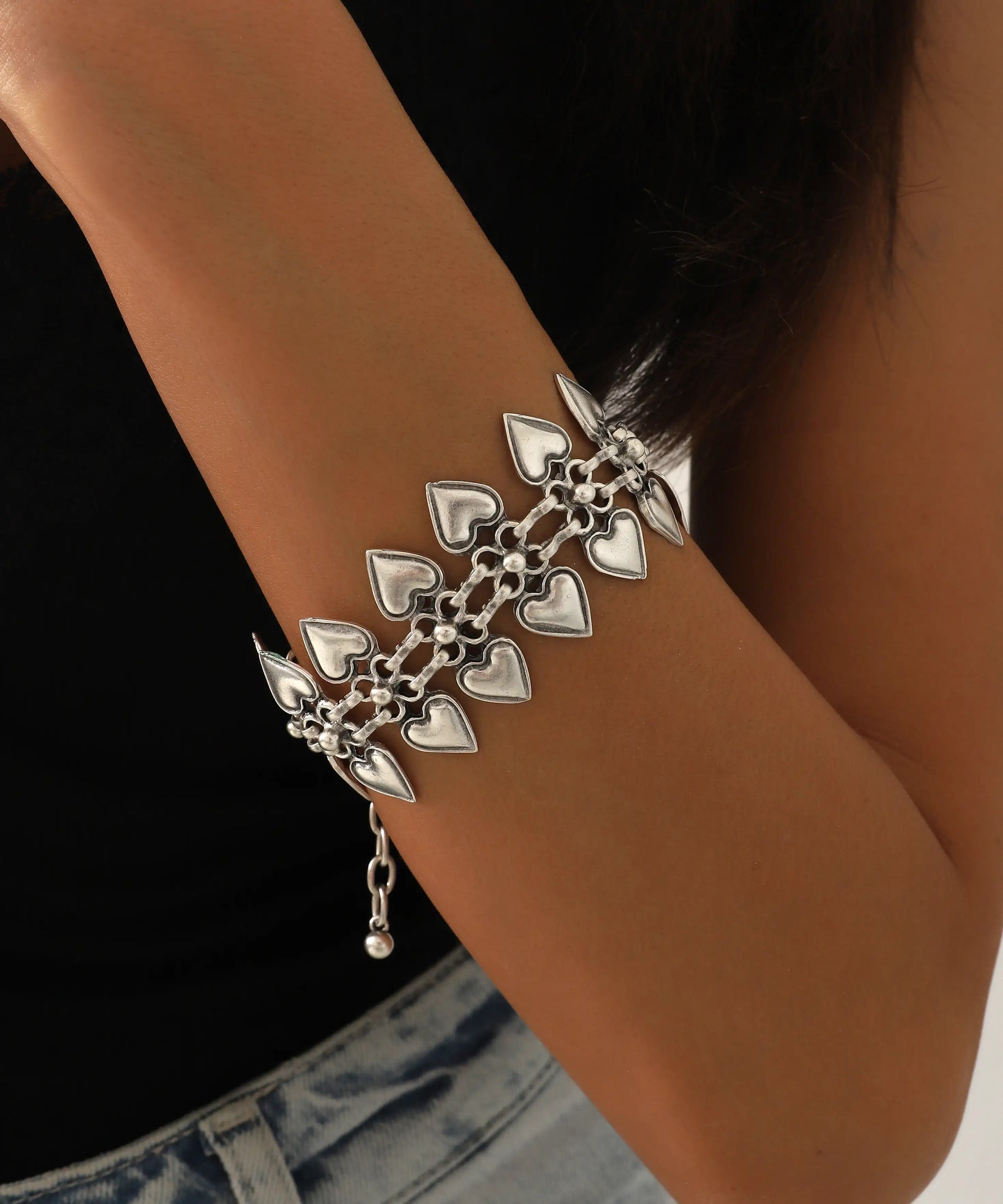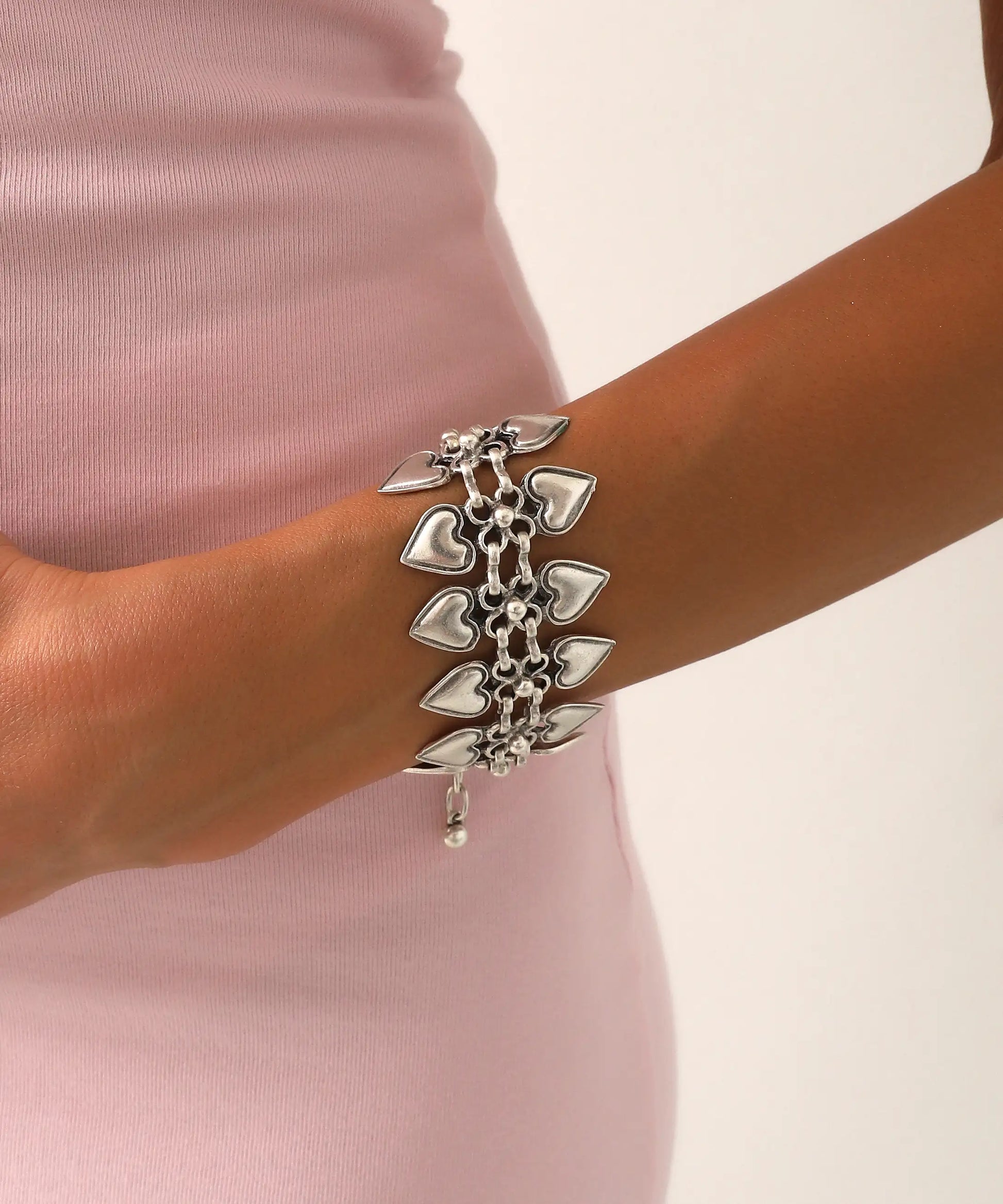 Kalp Detaylı Gümüş Kaplama Bileklik