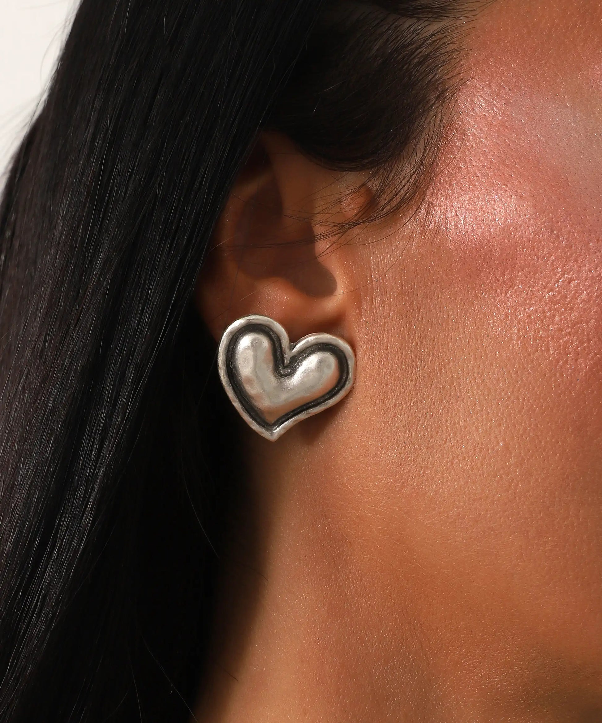 Kalp Formlu Gümüş Kaplama Çivili Küpe