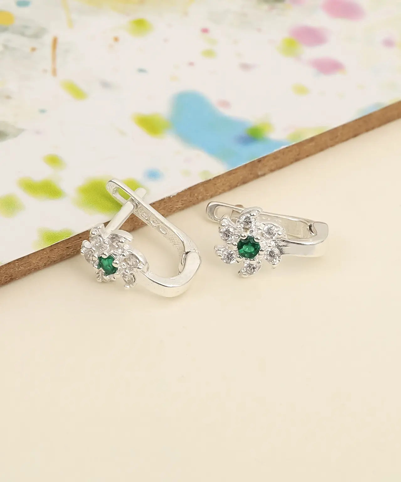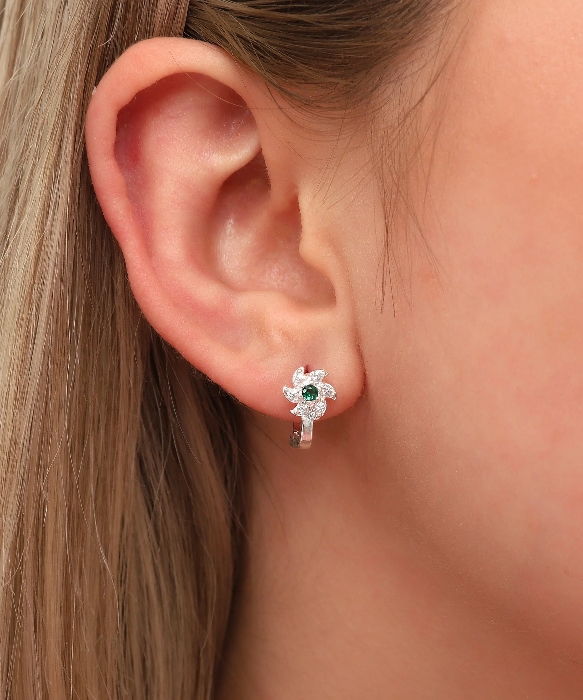 Minimal Çiçek Tasarım Gümüş Küpe