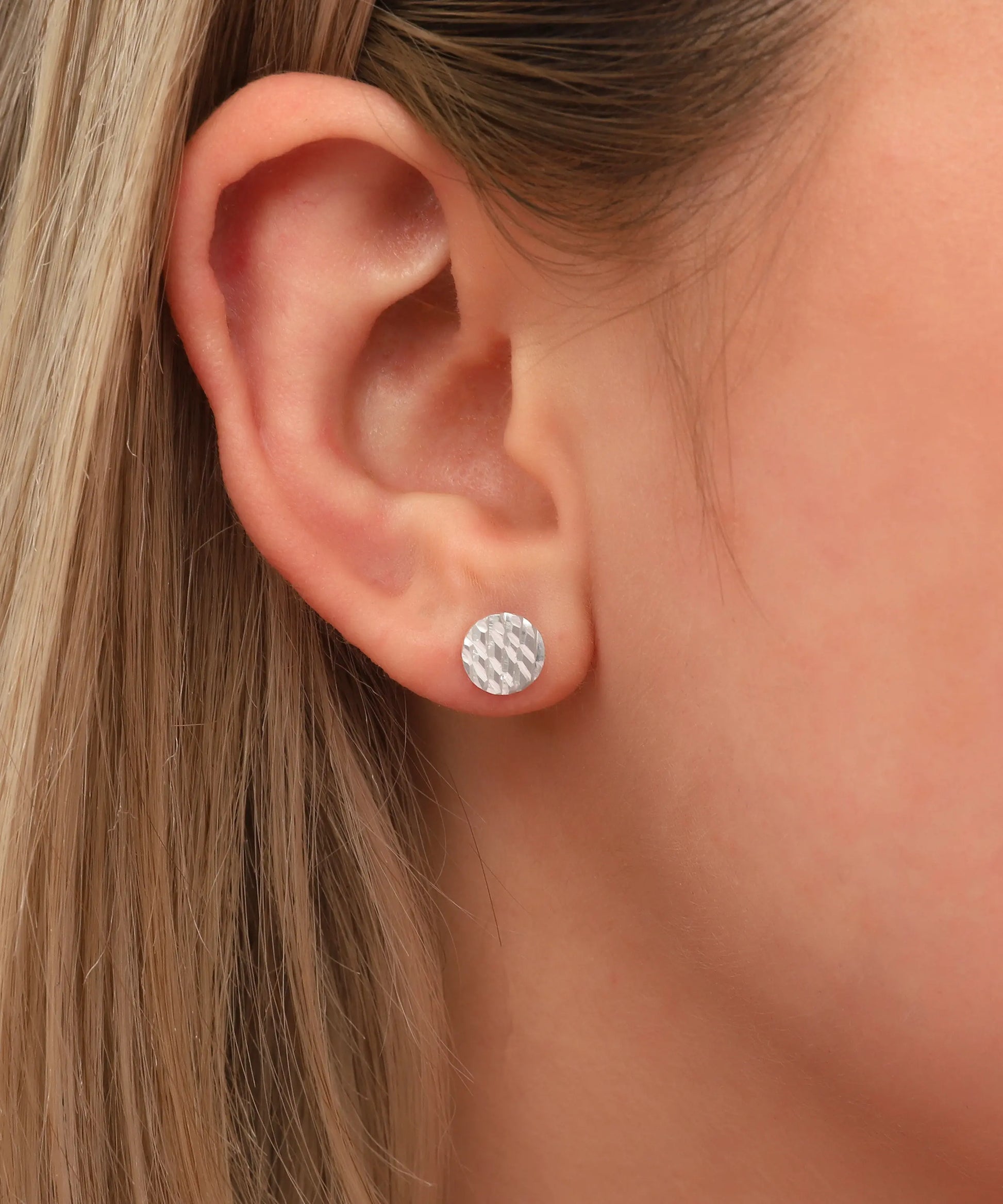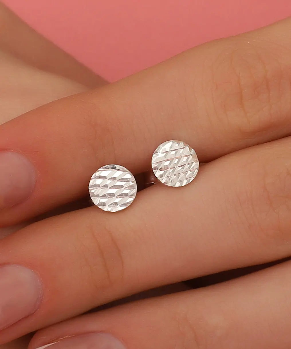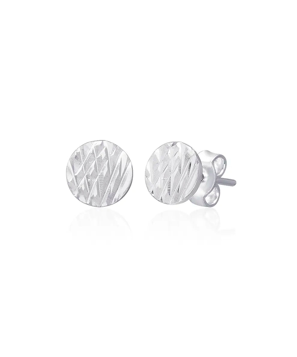 Minimal Yuvarlak Tasarım Dokulu Gümüş Küpe