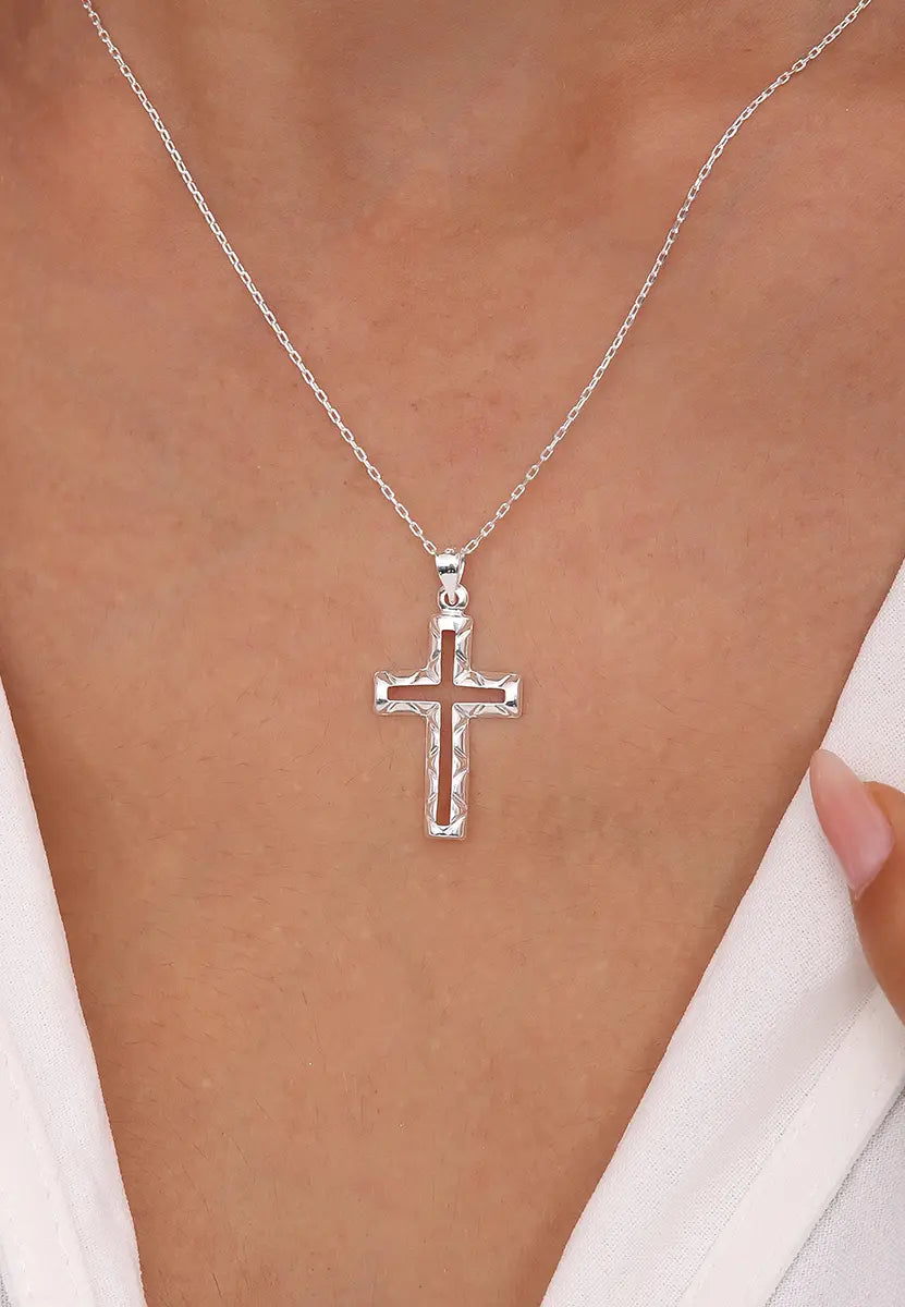 Modern Dokulu Gümüş Haç Kolye