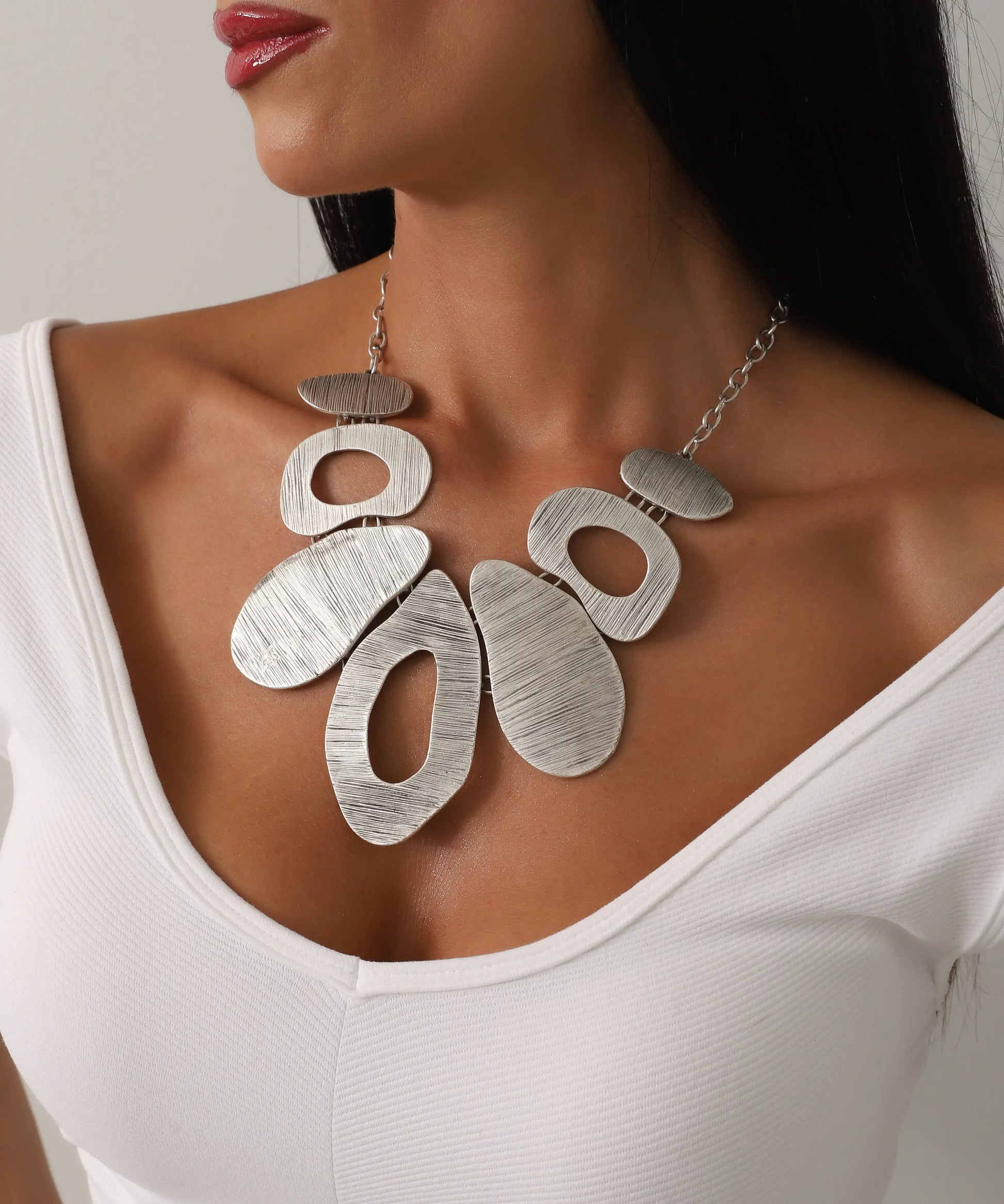 Modern Sanatsal Detaylı Gümüş Kaplama Kolye