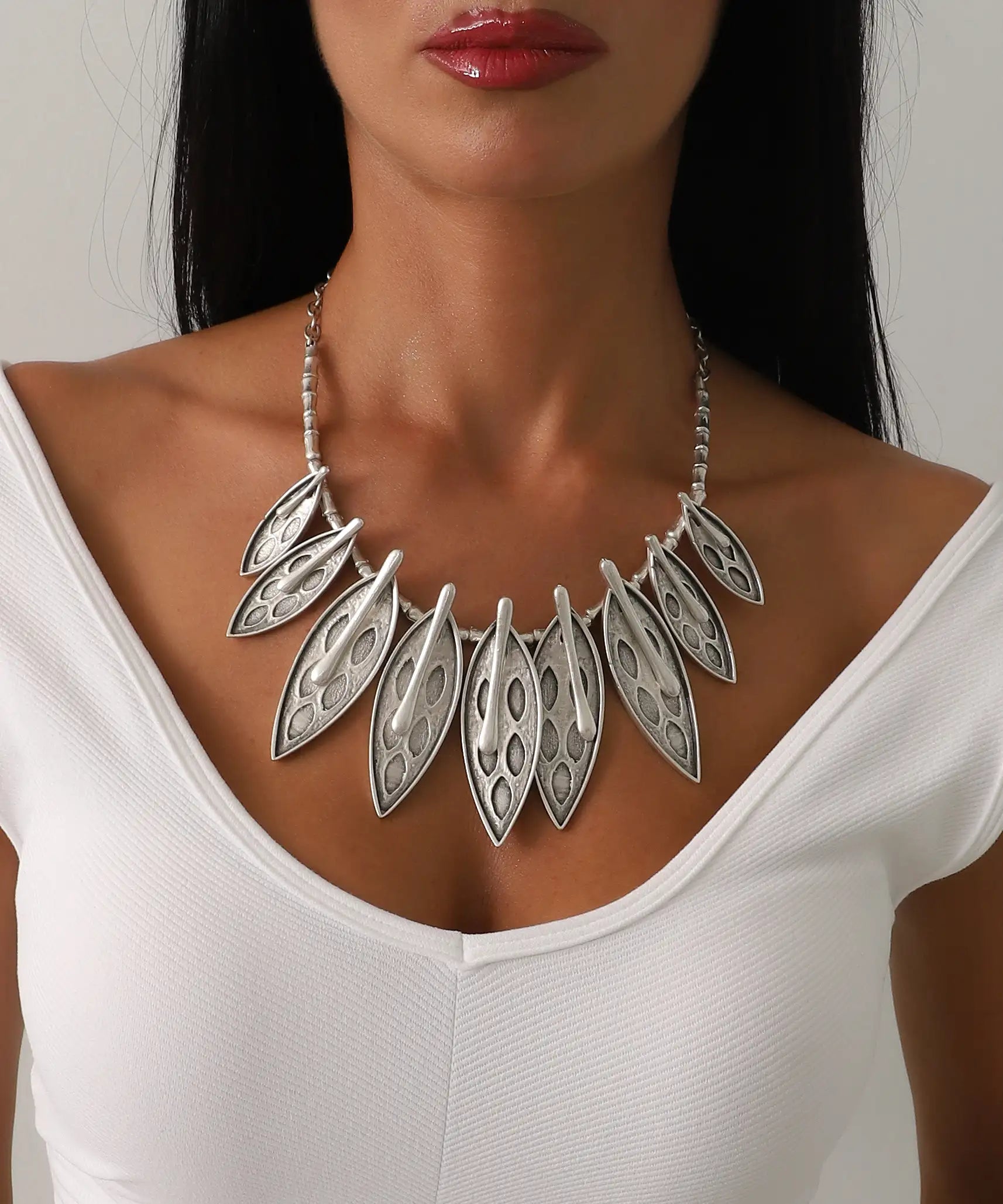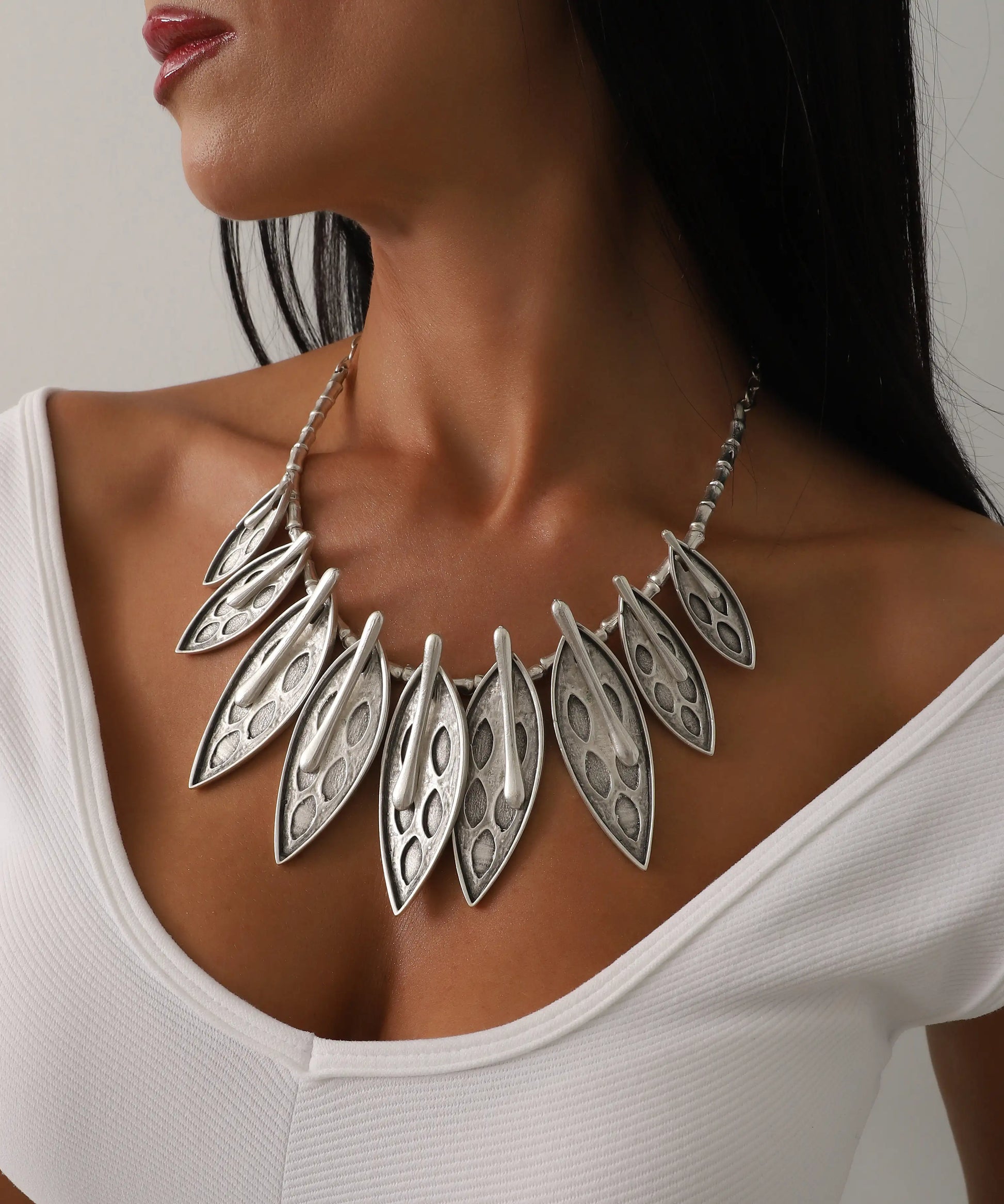 Modern Tasarım Yaprak Detaylı Gümüş Kaplama Kolye