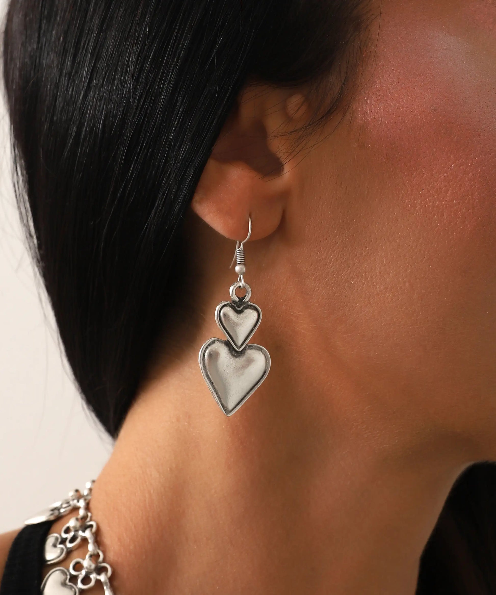 Sallantılı Kalp Detaylı Gümüş Kaplama Küpe