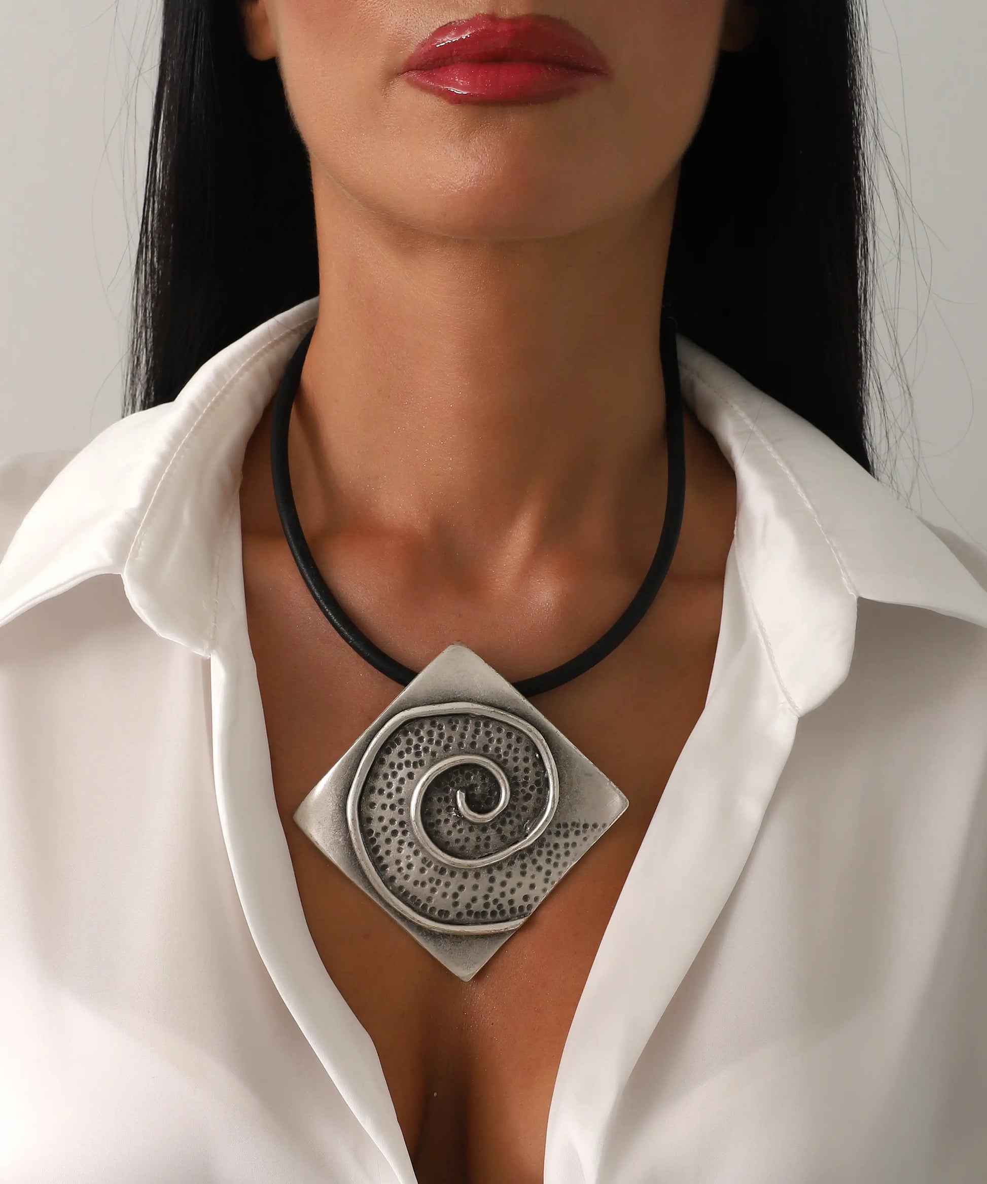 Sanatsal Tasarım Deri Detaylı Gümüş Kaplama Kolye