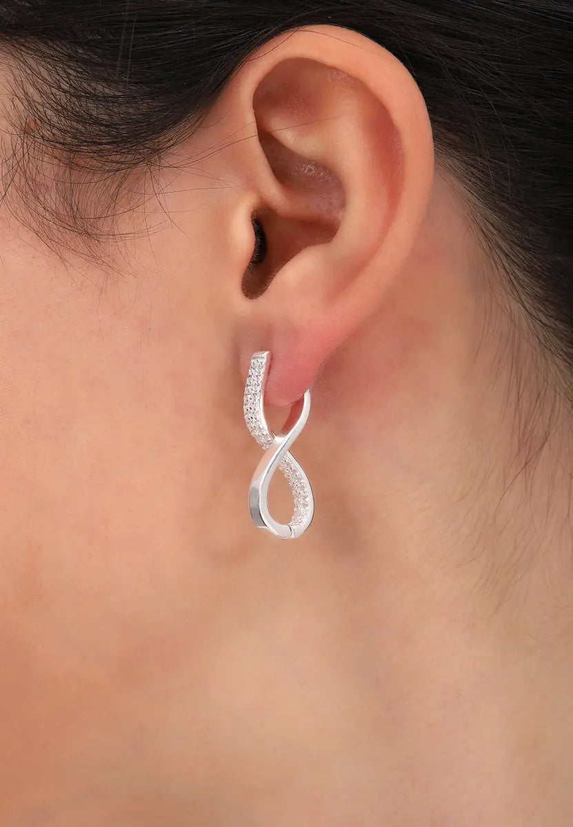 Taş Detaylı Sonsuzluk Gümüş Küpe