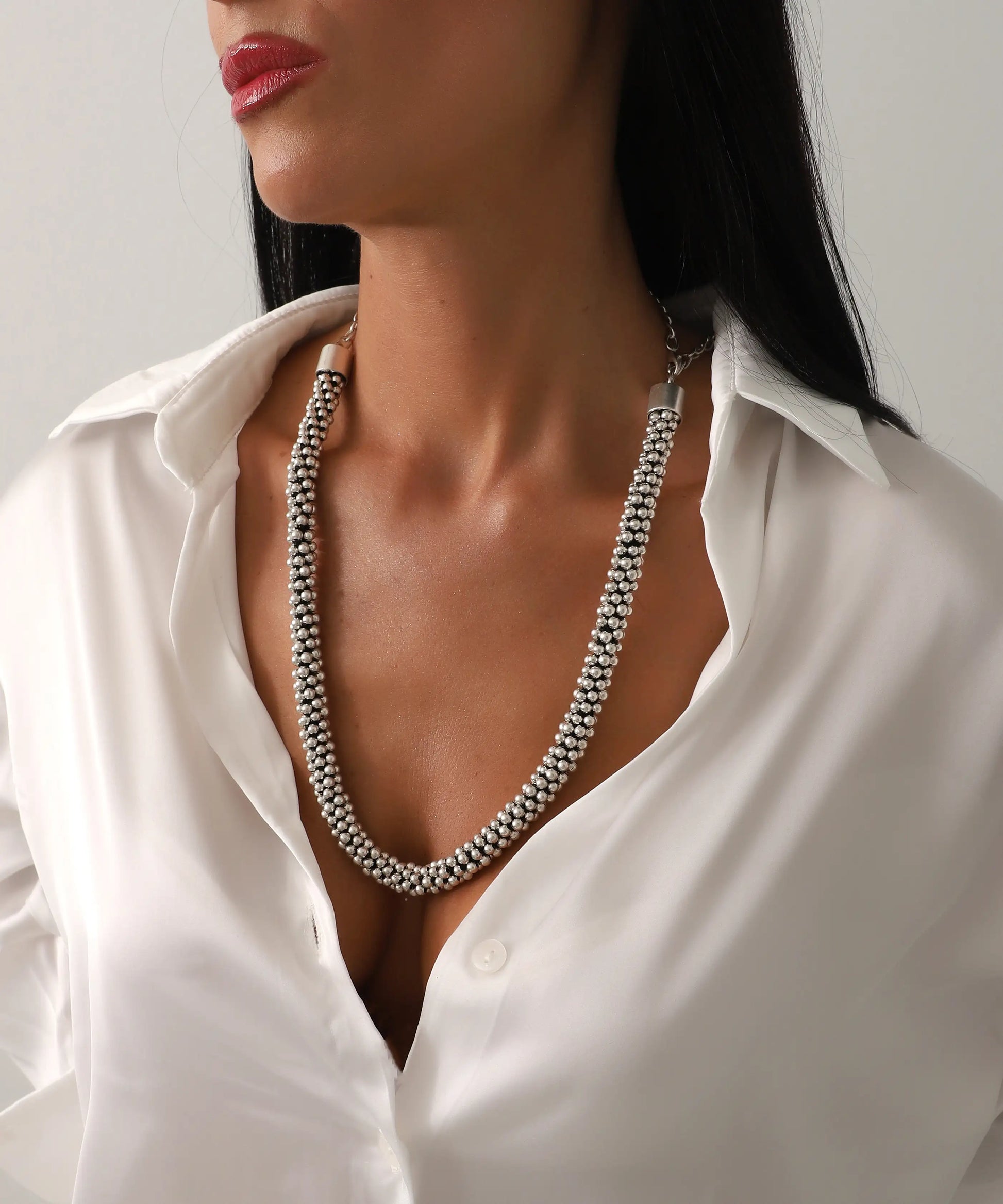Top Zincir Model Gümüş Kaplama Kolye