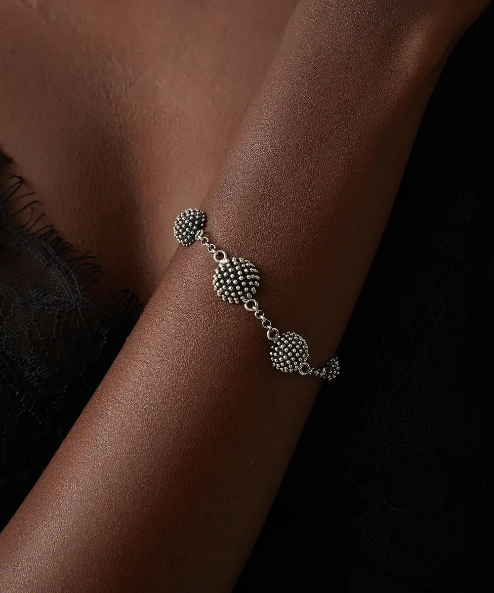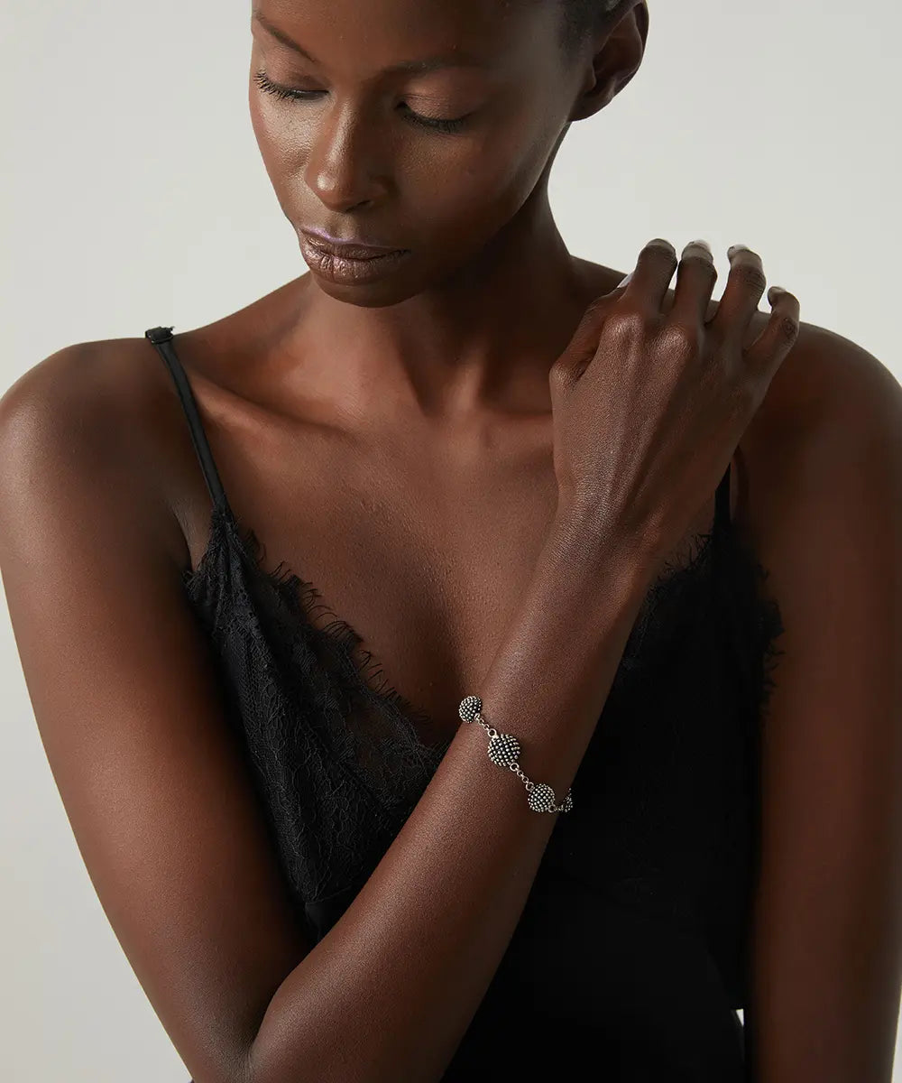 Vintage Esintili Kabartma Desenli Gümüş Bileklik