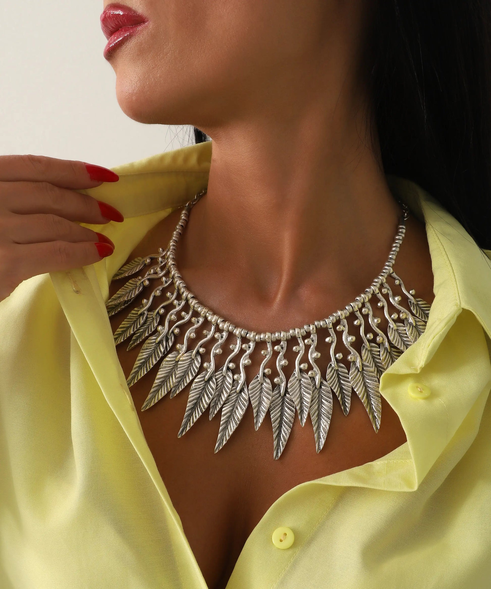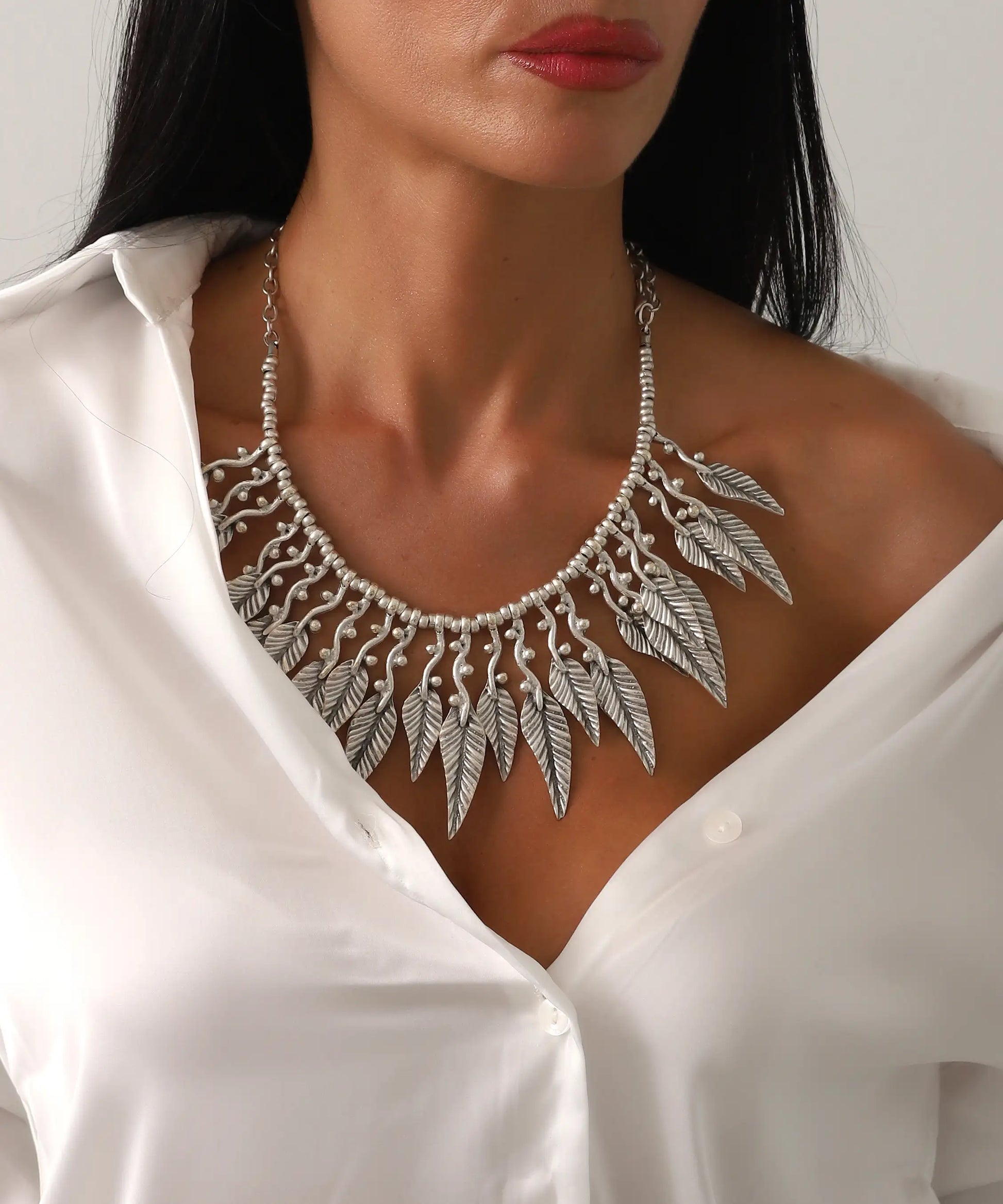 Yaprak Detaylı Gümüş Kaplama Kolye