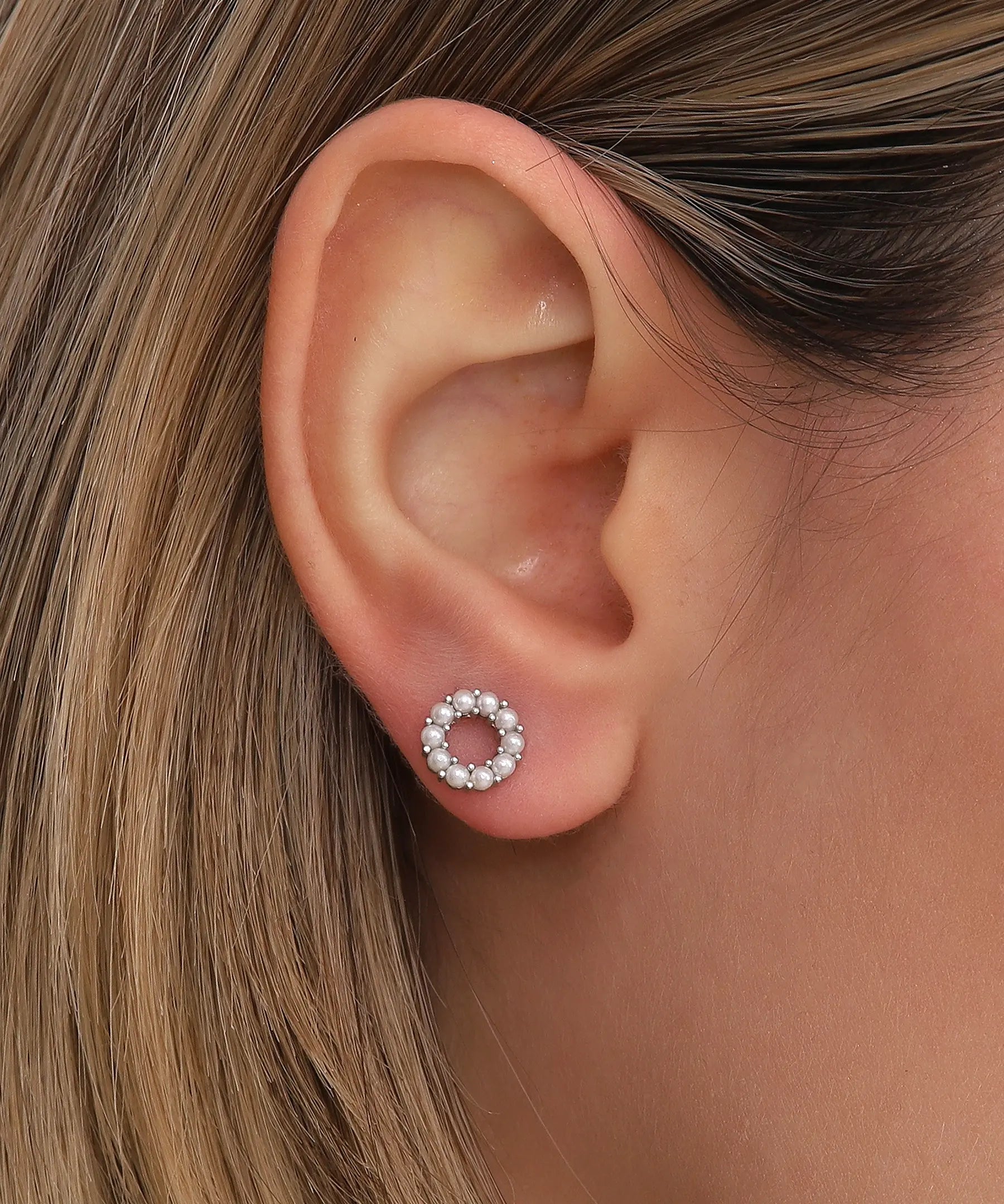 Zarif İnci İşlemeli Mini Gümüş Halka Küpe