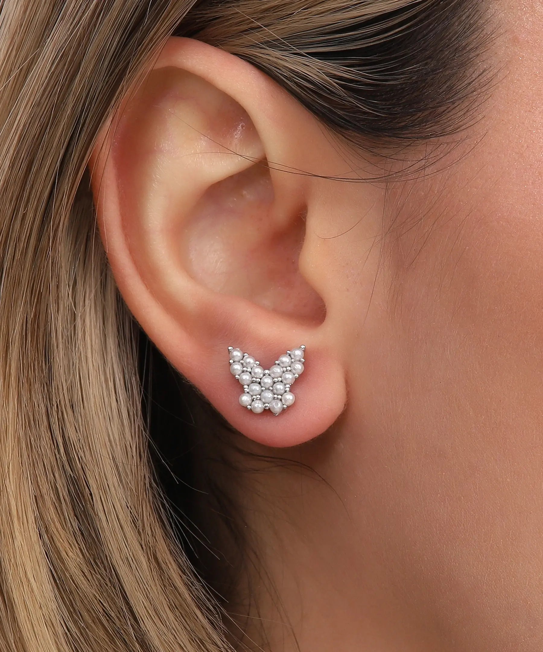 Zarif İnci İşlemeli Mini Kelebek Gümüş Küpe