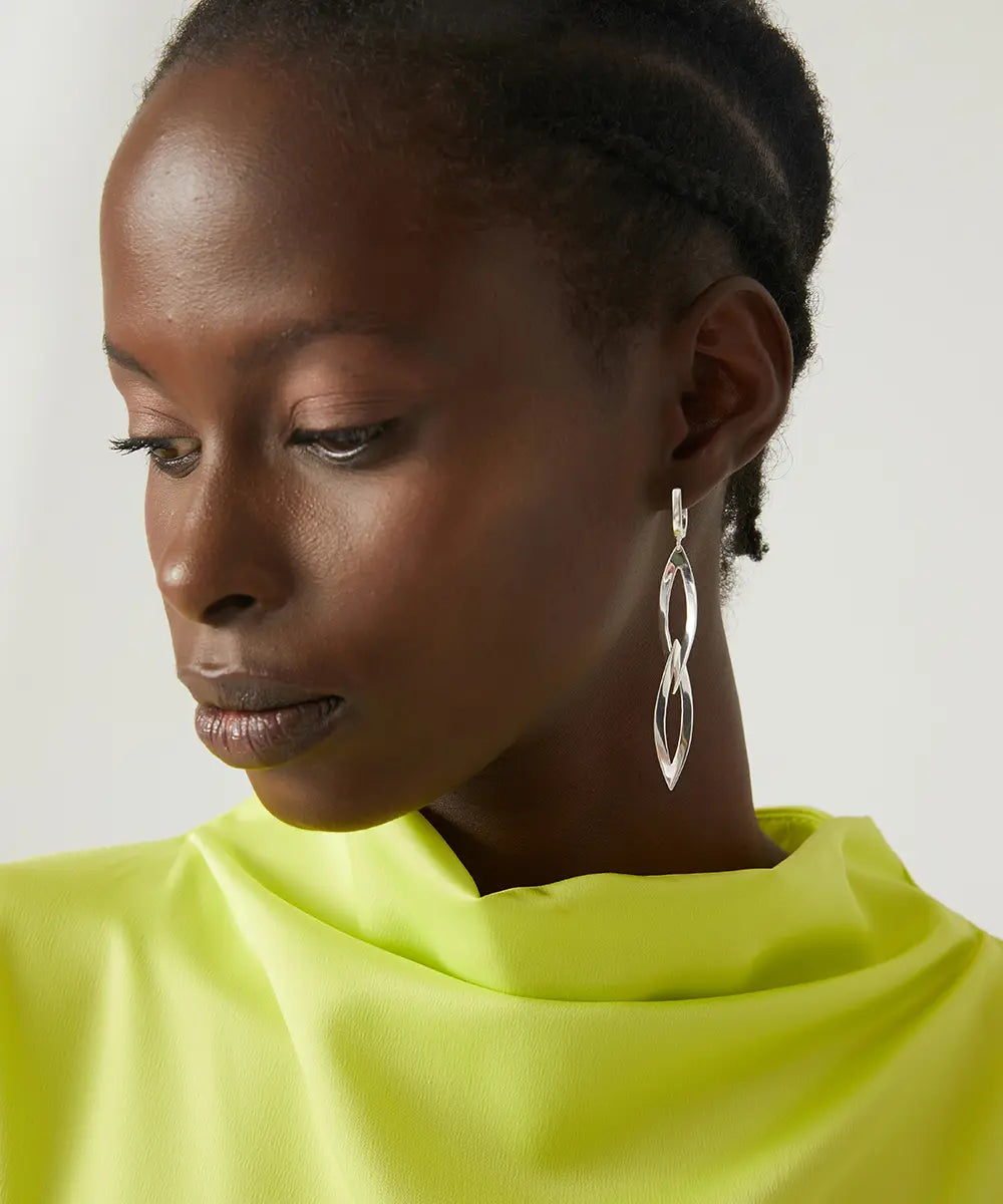 Zarif Kıvrımlı Tasarım Gümüş Küpe